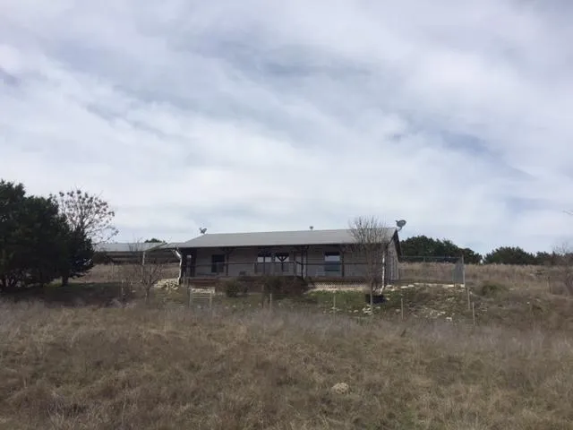 Perfect weekend getaway or permanent home. Land consists of 30.69 acres of wooded and pasture land. The topography is great with the west side being a high hill covered in large cedars and the east side is a high open meadow with scattered trees and the idle is a large draw area where the improvements and the pond is located. There is one cross fence right behind the house. The house is located on the side of a hill overlooking the valley/draw and pond. A large covered deck is the perfect place to entertain. The home has one large master bedroom with a large bath and walk-in closet. Beamed 14 ceilings throughout the entire house. The living room has a wood burning stove with a stone wall. There is a utility room with a half bath near the side entrance. The modern kitchen has lots of counter and cabinet space plus a center island. The house is all tile floors, all stone exterior, metal ro...