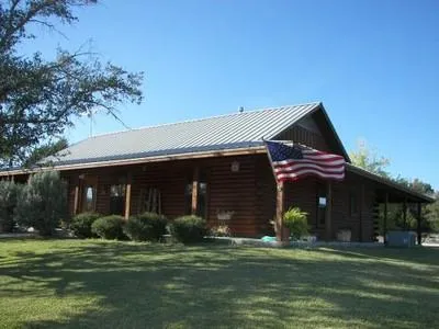 Warm-up beside the woodburning stove in this 1768-SF log home in Lampasas. This split bedroom floor plan delivers 3 bedrooms, 2 bathrooms, a striking dining room with beaded board wainscoting, welcoming great room with vaulted/cathedral ceiling ( 13.5 FT high), charming kitchen with granite countertops, convenient laundry with extra storage & freezer space, solid wood doors, metal exterior doors, ceiling fans, French doors, custom drapes & blinds, separate shower, walk-in closets for lots of clothes, linen storage closet, beaded wood ceiling in Master Bedroom,central heat / air, and stained concrete floors (Malay Tan) throughout. All the exterior / interior walls are log for a cozy ambience! Appliances include a refrigerator, dishwasher, microwave, gas (propane) range, and breakfast bar / pass-thru.