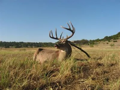 This is a turn-key hunting and recreational ranch that is set up and ready to enjoy. Lodging is provided by a very nice 2004 3-2 American Homes, fully furnished double-wide mobile home. The land is beautiful,with a horseshoe-shaped mountain located at the back of the ranch that encompases about 1/3 of the 218 acres. There is about 300 ft of elevation change which makes the ranch seem much larger than 218 acres. The mountain creates a secluded bowl where the live spring and lake are located. The lower elevations of the ranch have tall native grasses and scattered hardwood timber with very thick brush closer to and up the sides of the mountain. The mountain top is very rough and rugged with heavy brush, prickly pear and beautiful timber. There are six hunting stations set up with feeders, box stands and at least one bow stand, some have two bow stands. These were strategically locate...