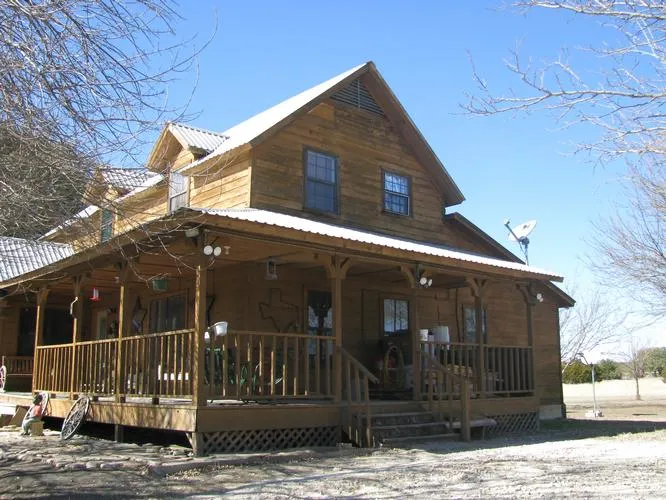 Great little ranch with good cover, beautiful oaks. Drive down a winding road with gorgeous oaks on either side to the beautiful rustic home with a large wrap around front porch! You can kick your feet up here!! Home has beautiful woodwork!! Large living with wooden beams on ceiling, custom wood (real wood) floors in dining and kitchen! Apartment has been added to the back of the home that would make great office for a work at home person or a wonderful set up for extended family. Large oaks in the yard, hill country view from large front porch! Beautiful place to raise a family, as the seller's have done! Good small town school. Great place to retire, have a garden, raise a few calves or dorper sheep. Ag exempt has expired. Has a large storage building, a large metal shop or barn. Property is fenced and cross fenced, has two stock tanks that are both dry.