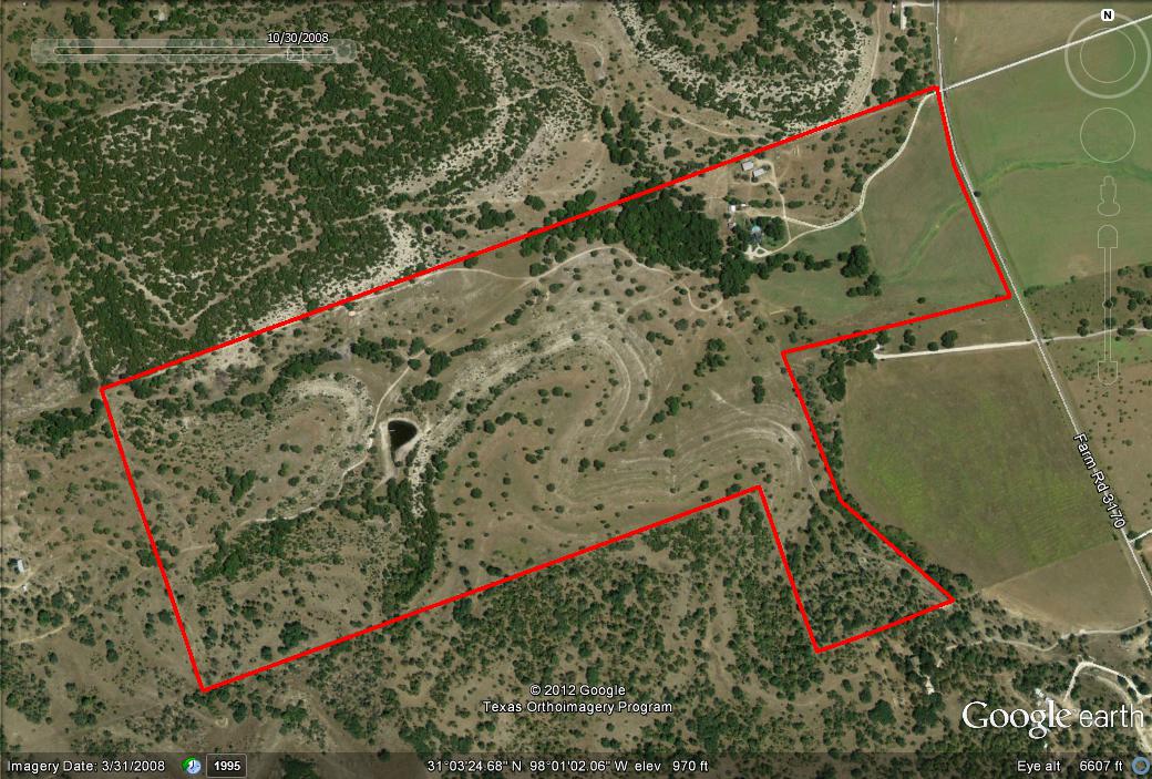 This rolling land features several nice areas with long distance panoramic views of the Texas Hill Country. Large pecan, live oak, Spanish oak, elm, and other native trees cover the ranch and provide plenty of shade on the property. The ranch is completely fenced with good 11 stranded barbed wire/predator wire fencing. A wet weather creek, large stock pond with floating dock, and a wet weather pond provide water for the animals, as well as offering a place to fish. 20 acres of improved coastal grass land allow for good grazing for horses or cattle, and hay production. The ranch has excellent wildlife habitat, making it great for wildlife observation or hunting. There are plenty of whitetail deer, turkey, dove, and other native game.