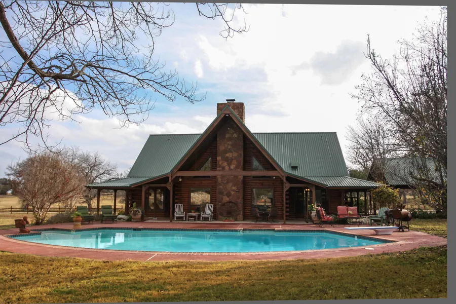 Just minutes from Lampasas, this Hill Country stunner has it all - miles of views, mature Oaks, Pecans and Elms, brushy draws and ridges and a nice Coastal Bermuda hayfield. The terrain and cover make this a perfect hunting and recreational ranch. Completing the picture is a beautifully appointed 2400 square foot log cabin home with an open floorplan, gorgeous rock guesthouse with fireplace and a rock game room/party house, all surrounding a swimming pool and perfect for entertaining.