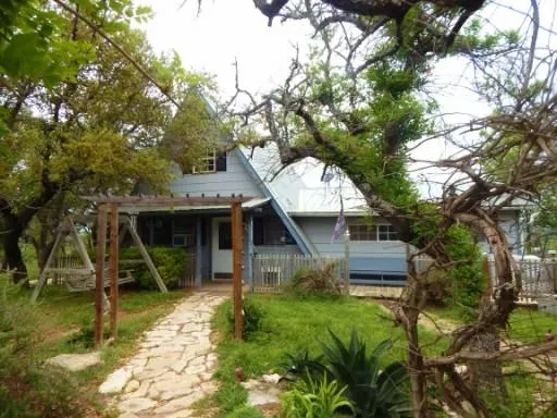 Get away from it all at this 12 acre ranch that is already set-up for horses, chickens, gardening, and much more. The A-frame home master suite on the main floor, two bedrooms upstairs, fabulous views, library or office room, separate dining room, large family room, den, a kitchen with lots of storage, and a large deck to relax on and enjoy the hill country views. Some of the many features of this home are a wood burning stove, central heat and air, one huge master closet, a second master closet, double vanities in the master bath along with stand-up shower and whirlpool tub, washer & dryer hook-ups in master bath, second full bath downstairs, stainless steel appliances, oak cabinets, gas stove top, electric oven, kitchen island, Reverse Osmosis system in kitchen, custom queen-sized Murphy guest bed, built-ins, lots of light through the many windows, and two water heaters. The property h...