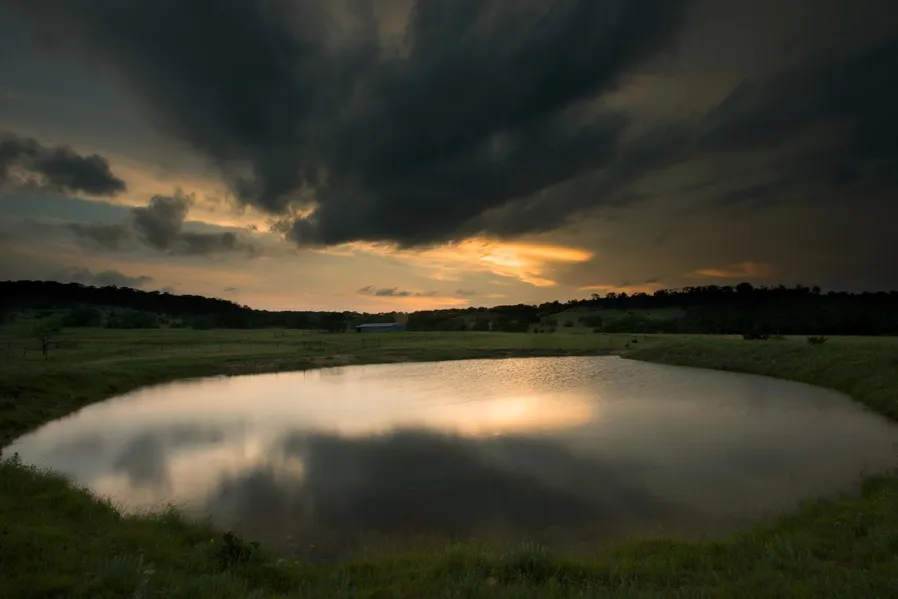 4 small lakes one of which is spring fed and the owner reports has never stopped running. A spring fed creek meanders throughout the middle of the ranch which runs 80% of the time. One well that provides water to the ranch house; however the owner uses city water which is available.