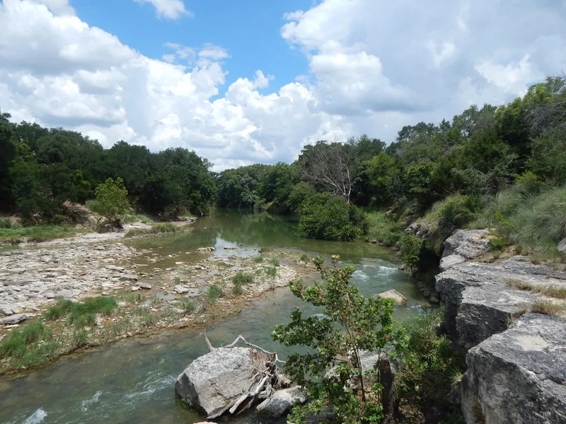 385 Acres on the Lampasas River provides a great mix of rolling wooded pasture land, a coastal Bermuda hay field and 900 ft on Lampasas River frontage. The property is very wooded with oaks, elms, and other hardwoods with some cedar. Approximately 200+ acres is east of CR 3600 nad has a main house of 2800+ SF, 800+ of covered porches on front and side 250 ft screened in porch on side and a detached double carport with a 14 X 24 workshop/storage. The house is all rock exterior with a metal roof built in 1986. The home is in excellent condition and contains three bedrooms, three bathrooms, dining, kitchen, living, utility, and two office areas. The 200+ acres is rolling, wooded, small creek area, two nice ponds, and great views. Fenced on three sides only. Approximately 185 acres is located west of CR 3600 and consists of 120+ acres of Hay grazer and some coastal Bermuda hay field with the...