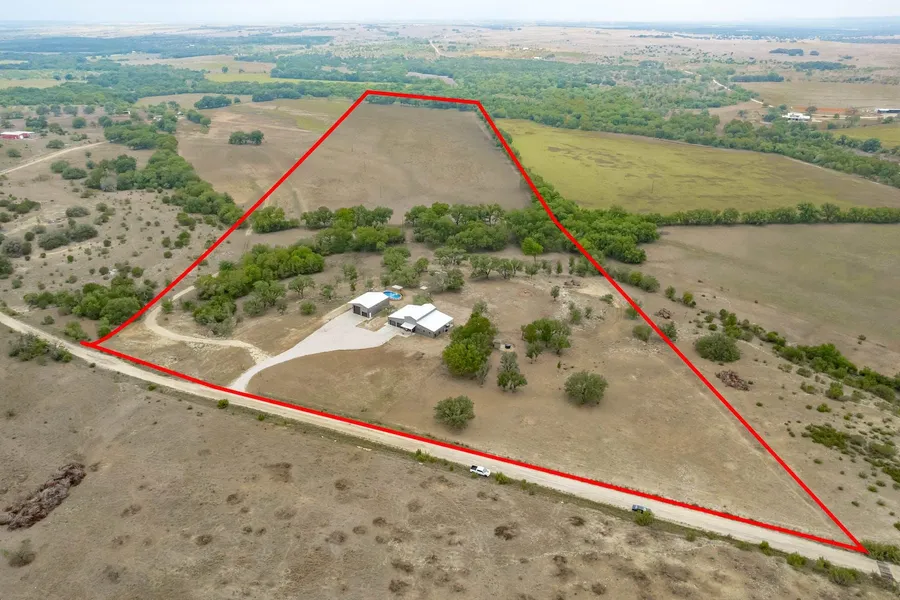The 3 bed, 2 full bath, barndo is 2661 sf with an open concept living/dining/kitchen with high, exposed structure ceilings.The home was built in 2022, has a 2-car attached garage w/ epoxy floors, stainless steel appliances and is full of extras and upgraded finishes. Off the living room is an oversized covered patio w/ epoxy floors and the RV barn has a 161 sf conditioned office with half bath. The home has some of the latest technology which includes a $20k CONTROL4 SMART HOMES system, security cameras, wifi garage door openers and keypads. Water is supplied to the home by a private well. Hamilton Electric provides electrical and home is on an aerobic septic system. The home is all electric and a 120 gallon above ground propane tank runs the six burners on the 48" range. Seller uses Direct TV and Nextlink for internet. In Lampasas ISD.
