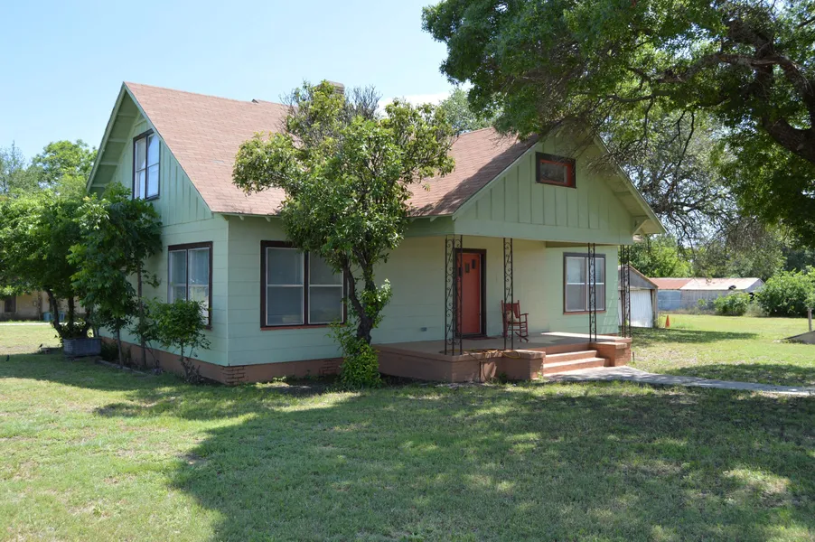Large 3 bedroom 2.5 bath home located with great frontage on US Hwy 183 allowing great commercial potential for future use. This home sets on a large corner lot allowing lots of room for a huge shop/ building, garage, etc. Home has fresh paint inside and out, large front porch for lemonade afternoons, family settings. Living area has a wood burning fireplace, kitchen has a really cool antique Frigidaire Custom Imperial cook stove from the 1960's. Home has hardwood floors that have been refinished. Two bedrooms and 1.5 baths are downstairs and a large bedroom with french doors that lead into a sitting area and 1 bathroom are upstairs. This home has a ton of closets and storage and is approximately 2700 sq ft. Great place to call "home"! Priced to sell at $57,900