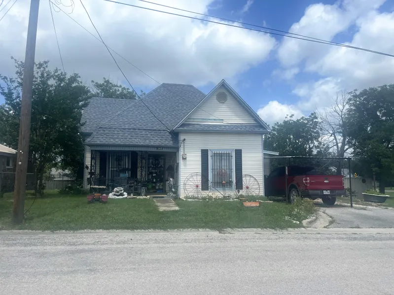 Large Corner lot with access on 8th Street and FM 581 E. Large lot for additional build if desired. Quaint older home, 3 bedrooms, one of the bedrooms is currently used for laundry room. Home has a large open eat in kitchen, front living area and a back den open with the kitchen area. Large covered back deck porch allowing for back yard living. This would make a great home to renovate. Only one block from school, raise your family or great for retirement!