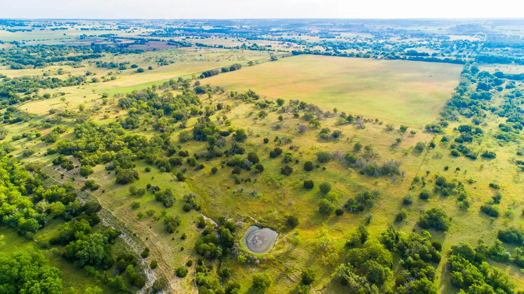 The front 70 acres of the property is an open tillable field that can be used for livestock grazing or crop cultivation. The back 40 acres is high fenced with rolling terrain and great cover for wildlife, as well as a stock tank that holds water year-round.
