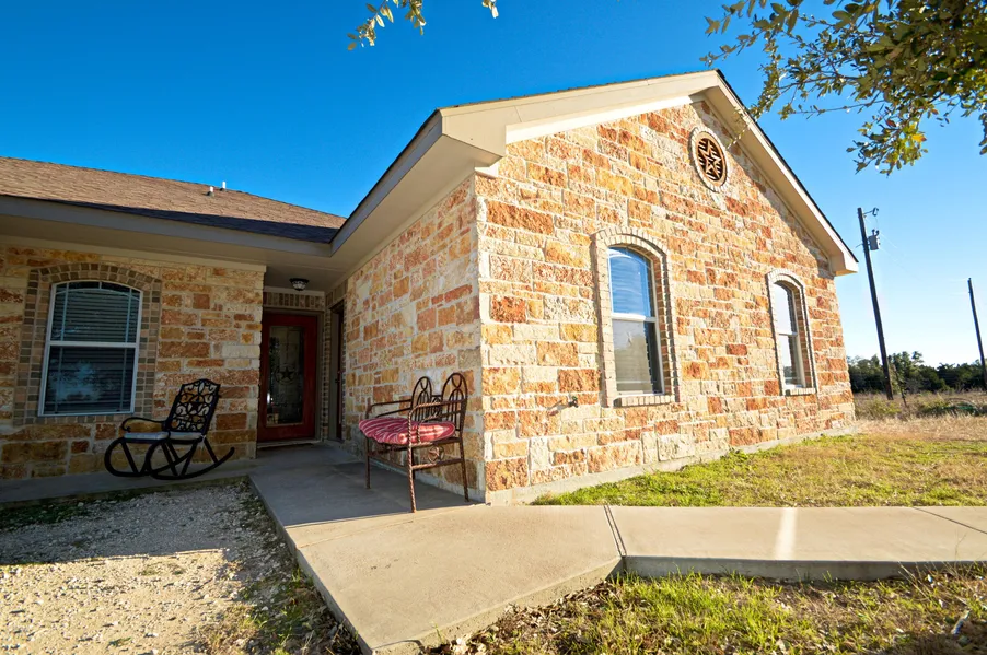 Bring the horses! Great location, in the country but close in!! Nice custom rock/brick home, 2 bedrooms (could be 3), 2 baths, stained concrete floors, open living and dining area, kitchen with custom cabinets, granite counters! Large office area or game room with a rock bar and rock corner accent entertainment areas. Land is nice with large trees!! Fenced and cross fenced for rotation, horse barn with 6 stall areas for your horses, tack area, hay storage, wash rack, and a separate storage or craft, home business area. The back of the land has a separate entrance complete with septic, water and site for another home.