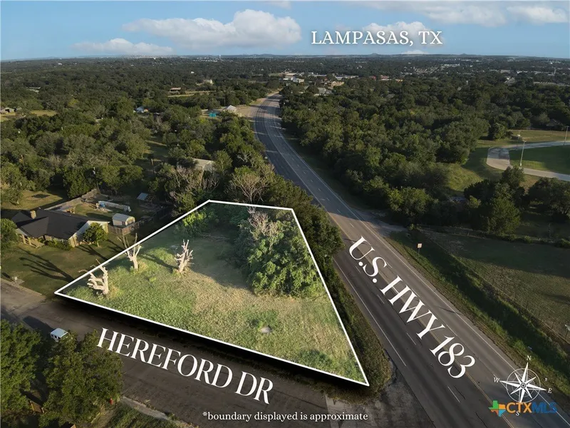 High Visibility vacant lot in the city limits of Lampasas. This Commercial zoned lot has frontage along US Highway 183 and Hereford Drive in Lampasas.