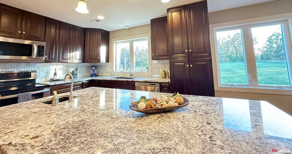 NEW REDUCED PRICE! Check out this gorgeous acreage, near city amenities, with 3 acres and a SECLUDED backyard! So much to offer with 5 beds/3 baths, custom cabinetry/soft close/stone countertops throughout, eat-in kitchen, dining room, pantry, custom backsplash, double oven, island with Blanco prep sink, & hardwood floors. There are two living rooms (perfect for Homeschoolers!), newer windows, & basement finish adding a 5th legal bedroom with egress. This home also offers a 2022 HVAC system with heat pump & humidifier, sump w/ battery backup, 2023 water softener, and 2020 well. Outdoors, you will love the multiple patio areas, expansive green space, meticulous & fenced garden, garden shed, a variety of fruit trees, dog kennel, & rocked landscaping. LPS bus service as well as all paved roads to the east. Attached & heated garage plus a 30'x48' outbuilding with 16'x10' overhead door and over 6" concrete floor. Let’s make that acreage dream a reality! Call today to see it for yourself!