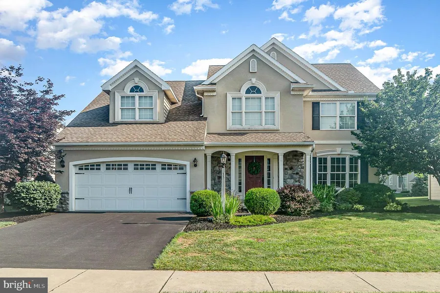 Move-in ready home in desirable neighborhood of Clearview Gardens with finished lower level. 1st floor features a remodeled kitchen with quartz countertops, glass linear mosaic tile backsplash, under cabinets lighting, luxury vinyl tile, stainless steel appliances, motorized cellular shades, pantry, breakfast bar and nook. The 2-story vaulted family room is upgraded with a stone surround gas fireplace, custom built -in bookcase and motorized cellular blinds. Also on the 1st floor is a formal dining room with French doors, office/den, powder room and 1st floor laundry. The 2nd floor features a primary bedroom suite with walk-in closet, 2 additional closets and a full bath. Also, three additional bedrooms share a full bath. The family room in the finished lower level enhanced with built-ins, home theater speakers and extra storage area. Newer water softener, propane hot water heater and radon system. Step out into the backyard to a huge 24'x14' paver patio! Oversized 2 car garage.