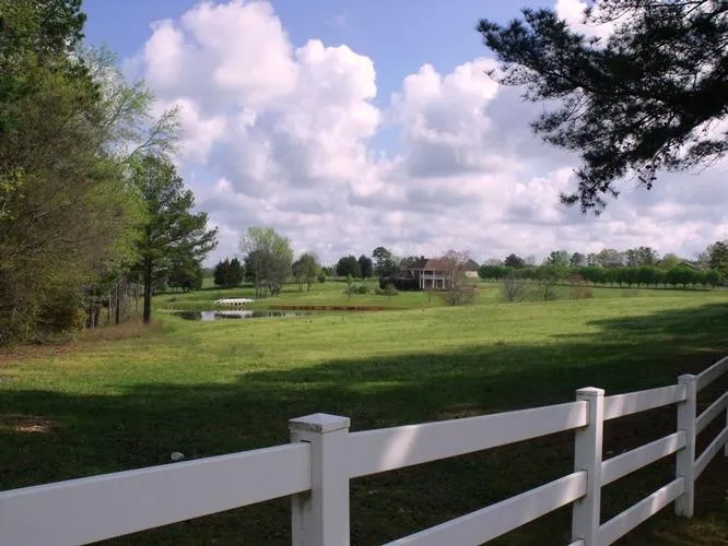 What an impressive sight when driving along the road and you look to the side and you see tree lined white fencing, manicured lawns, and a two acre spring fed pond and the estate home overlooking it all. Upon entering the gated drive, the Bartlett Pear trees and tasteful landscaping greet you. While built in 1989, this home has been well maintained. When you combine this, along with many improvements including, but not limited to Brazilian Cherry Floors, granite counter tops, new windows, extensive trim work and upgraded bathrooms. A large front rocking chair porch is the ideal place to enjoy the afternoons watching friends and family fishing in or strolling around the pond. Be prepared to be impressed when entering the stained glass front door. The formal dining room and formal sitting room or billiards room are strategically located on either side of the foyer which opens up to the great room. Extensive custom built-in cabinets, French doors that open to the large covered porch and brick wood burning fireplace make the great room a warm and inviting place to visit and relax with friends. The private main floor master suite includes a large bath with garden tub, tiled shower and separate vanity areas. Also part of the master suite is an office/sitting room with custom built-in book cases and cabinets and French door opening to the covered porch. Truly a master suite retreat or perfect in-law suite.