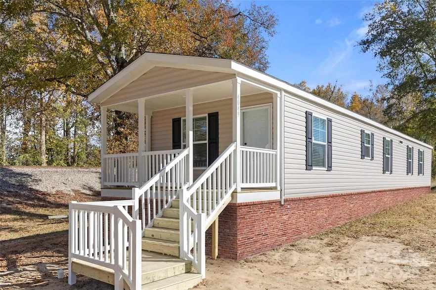 Welcome to your beautiful 3-bedroom, 2-bath manufactured home offering 1,085 square feet of comfortable living space. This total electric home features full drywall throughout (excluding closets) and overhead HVAC for year-round comfort. The spacious kitchen boasts 42" overhead cabinets with elegant crown molding, complemented by sleek black appliances including an 18 cu. ft. refrigerator and coil-top range. Enjoy the convenience of a dedicated laundry room with washer and dryer included, plus a 40-gallon electric water heater. Exterior highlights include durable vinyl siding, a welcoming covered front porch, and a rear deck perfect for relaxing or entertaining. Don't miss this opportunity to own a stylish, move-in-ready home. List agents are Manufactured Home Dealers at Your Home Place LLC.