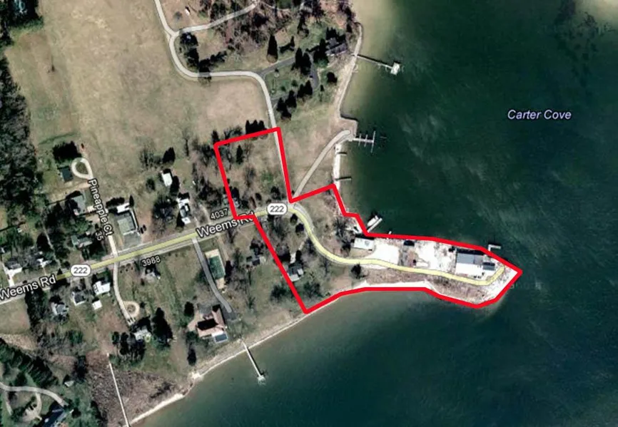 Property located at the mouth of Carter Creek just off the Rappahannock River. Fronts the end of Weems Road, a State maintained road. Just a short distance from the Tides Inn, one of the premier stops along the east coast for boaters. Property has spectacular views with docks (3) and riprap in place.