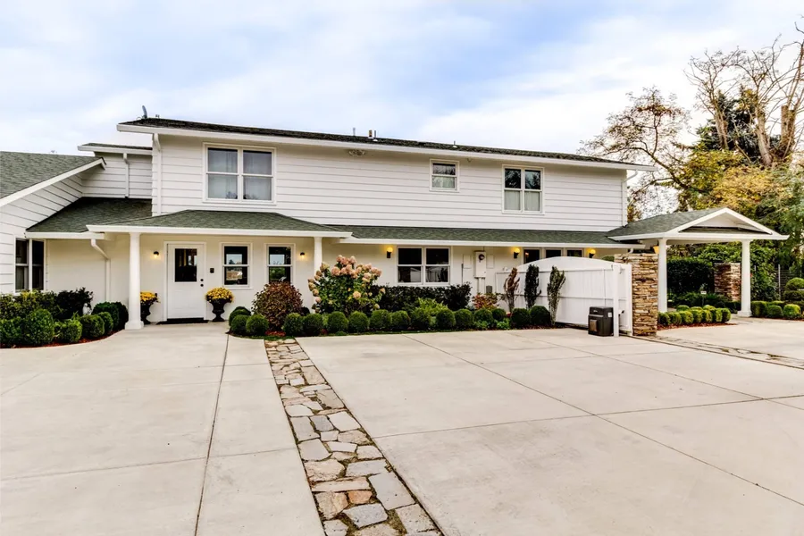 If you’re looking for luxury living on acreage in the Willamette Valley, look no further. Originally built in 1956, this farmhouse has been extensively remodeled with no detail overlooked. The main entrance welcomes you with coffered ceilings and Merbau hardwood floors that lead you into a well appointed living room with gas fireplace. A formal dining room with space to seat 14, this home is an entertainer's dream. The dining room flows into the heart of the home-- a Chef's kitchen complete with a breakfast bar, marble countertops, two Miele dishwashers, Viking double gas griddle, Dacor warming drawer and more. The main floor also has a second master suite that is handicap accessible. The suite includes a large bedroom, sitting room, walk in closet, and bathroom. The bathroom has heated marble floors, double sinks, and a shower that is handicap accessible. It is set up perfectly for se...
