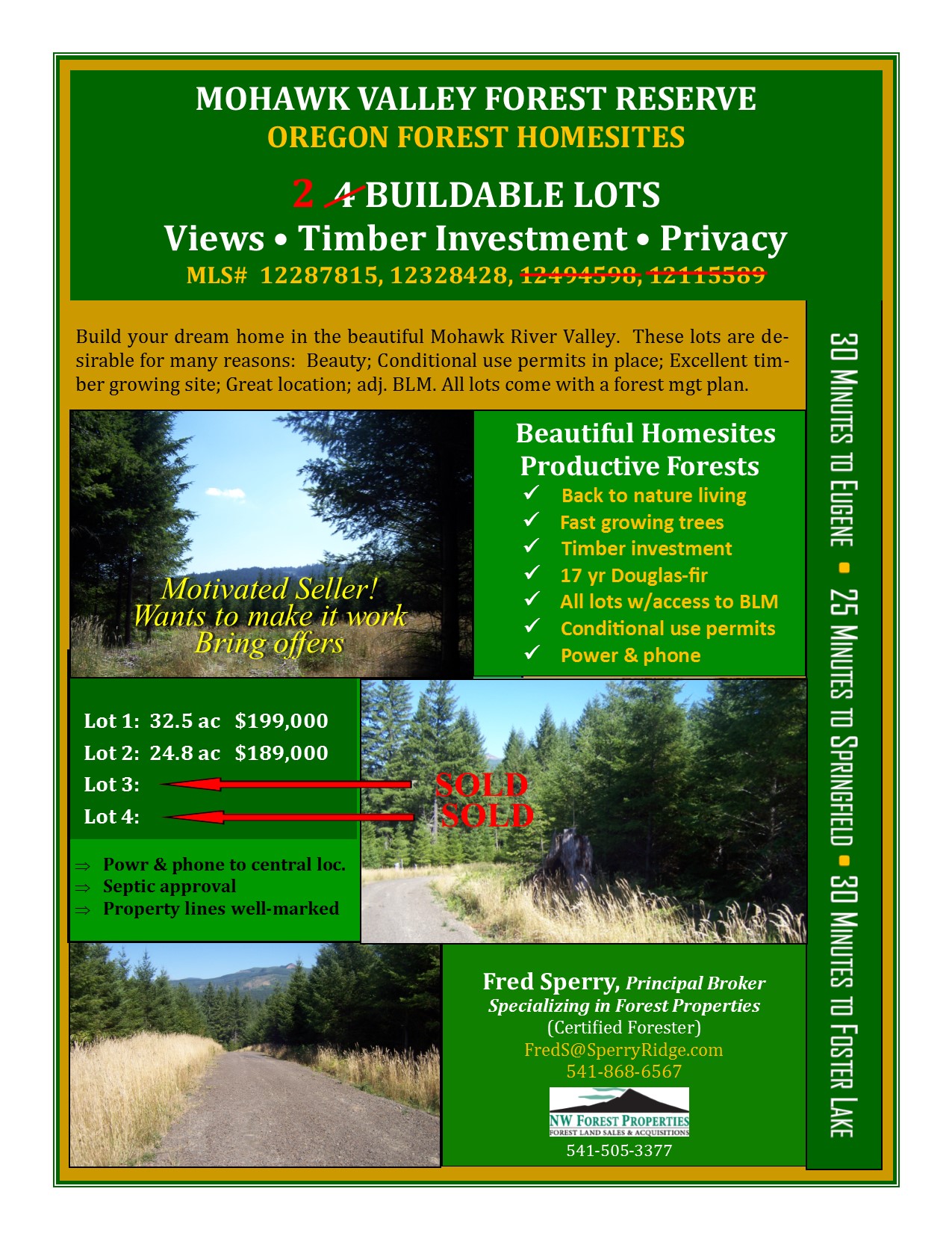The property has exceptional 17yr old Douglas-fir reproduction that is exhibiting terrific growth. Power and phone lines are installed. There is an approved septic permit.