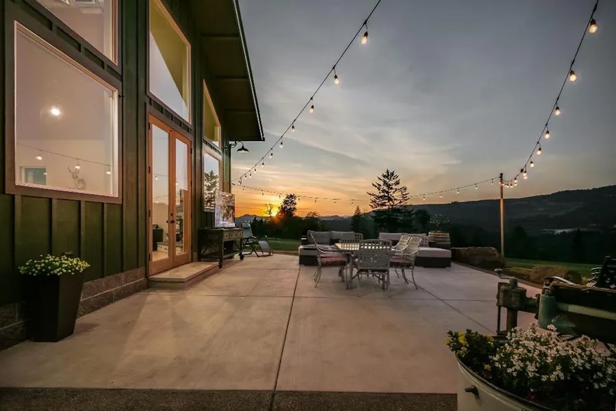 Garage/Shop: The detached garage building is a solidly built additional 3,840 sq ft that includes a 4 bay garage with roll up doors on one side and a finished shop space with roll up doors on the other side. The two sides are divided by a pull through RV bay which includes power, water and septic hook ups. The shop is an open space that includes a kitchen with granite counter tops, webfoot concrete finish on the floors and includes a full bath with washer/dryer hookups. There is a commercial grade forced air heat system and a Quadra Fire permitted wood stove. A concrete patio is accessed through French doors or the roll up doors for seamless outdoor entertaining. The shop also includes a camera system which is included in the sale.