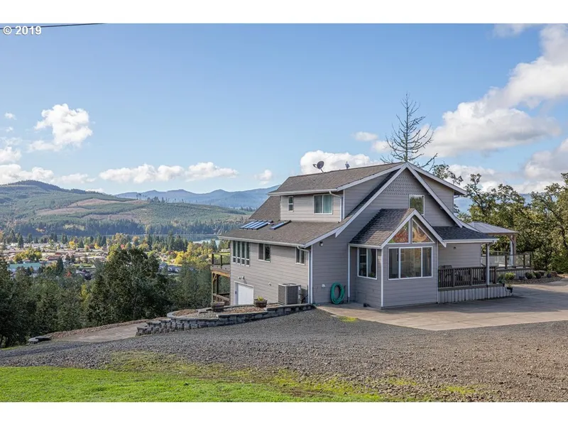 THIS VIEW IS LIFE! Wake up to this astonishing Pacific Northwest backdrop every day. Add in a HUGE SHOP, super CLEAN house & 5 fully fenced acres to complete the package. Home is 2,155 SqFt, 2 bedroom plus loft. Full bath on every level & half bath off Laundry room. The 36'x45' shop has full bath, RV hookups with dump out & 14' door. Lower SqFt could be converted to mother-in-law suite. City water & septic, video surveillance system, central vacuum, wrap around deck, gazebo & garden.