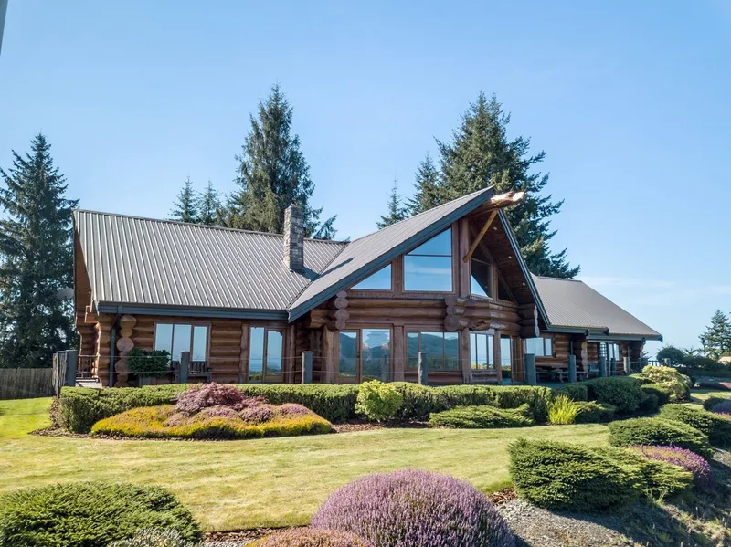 This magnificent log home was built by Pioneer Log Home Co. The property has fantastic views of two lakes, coast mountain range, the Pacific Ocean and includes nearly 600 feet of frontage on Mercer Lake. The main level has great room, open space concept living, dining, kitchen and master bedroom with ensuite bathroom including jetted tub and steam shower. The upper level has a guest bedroom, ensuite bathroom and separate sitting area.