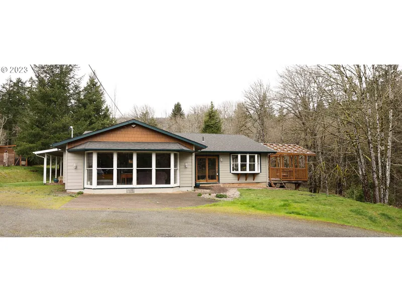 Escape to a serene oasis surrounded by nature with this stunning property! A private, gated driveway leads you to a beautifully maintained landscape that effortlessly blends with the surrounding wild forest. Follow the trail to a year-round creek with a tiny "creek island" all to yourself! The home has new siding and is wired for a backup generator and features a cozy wood stove, new dishwasher, elegant French doors and a spacious deck that overlooks the year-round creek. The owners suite is a true retreat, that includes a huge bedroom with seating area an entire wall of bay windows, a walk-in closet and a luxurious completely remodeled en-suite bathroom. The second bedroom has it's own bathroom. Additionally there's a 10x16 detached office and a 2 car detached garage for your convenience. Apple, cherry and plum trees with raspberries, grapes and many other herbs. This magical property w...