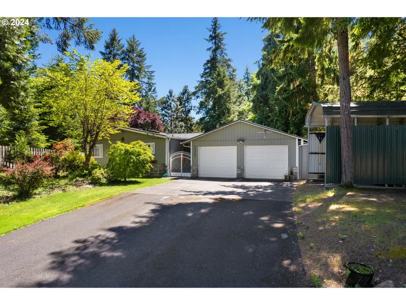This spacious four (4) bedroom two (2) bath home is located a short walk to the local golf course and features a detached oversized 2-car garage connected by a covered breezeway. The garage is covered by a sturdy metal roof for durability and electric garage doors for convenience. Between the garage and home, a covered breezeway provides a sheltered passage, adding a charming yet practical element to the layout. Adjacent to the garage, a dedicated RV carport equipped with sewer and electrical hookups awaits, making it ideal for easily accommodating recreational vehicles. An auxiliary electrical panel is installed for emergencies during rare outages. Just hook up a generator and you are good to go. Additional storage space abounds with an 8' X 10' storage shed and an additional lean-to structure included, offering practical space for tools, equipment, or outdoor gear. Step inside the home to discover modern amenities. Exquisitely maintained laminate and tile floors exist throughout the entire home. Both kitchen and a second bathroom are equipped with Thermomate electric point-of-use instant hot water systems, providing on-demand heated water for convenience. The roof has been upgraded in 2023, including a lifetime warranty, offering peace of mind and long-term protection against the elements. For added accessibility, an electric lift has been installed for the patio landing, enhancing mobility and convenience. Enjoy outdoor living with covered porches, fruit trees, and flowering plants, perfect for relaxing and entertaining in any weather. Trees abound on this property, offering shade in the summer and enhancing the feeling of tranquility. This property combines practicality with comfort, offering a versatile living space and ample amenities to suit various needs.