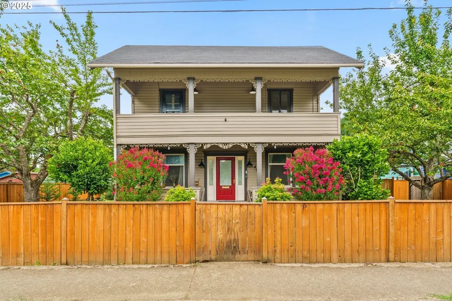 Rich with history, character and charm, this lovingly restored 1900 Victorian home blends the best of yesterday with thoughtful modern updates to last another century. Over the past few years the owners have reinforced the foundation, replaced almost all of the plumbing, electrical, and gutters, added a new roof over the primary suite, and remodeled both bathrooms as well as the kitchen while preserving period details. The main level showcases high ceilings, vintage woodwork, a sun-filled living room with Kuma wood stove, and a chef's kitchen with stainless appliances, breakfast nook, and a colorful central island. A remodeled primary suite offers exposed beams, new closet, French doors to a brand-new back deck, and an elegant bath with double sinks and walk-in shower. Upstairs are two bedrooms, a bonus space/office and a charming bath with claw-foot tub and skylight. The detached garage has been transformed into a heated studio with loft and utility sink. Fully fenced with mature landscaping, fruit trees, raised beds and an updated sprinkler system, this quiet, private property offers classic turn-of-the-century style with all the comforts of today just minutes from downtown Cottage Grove, river paths and parks. Please note, county records shows 3 bedrooms, however, this home has 4 separate rooms that could be used as bedrooms with closets and windows. Airbnb potential with the studio space and the primary suite on the main floor! A must see property!