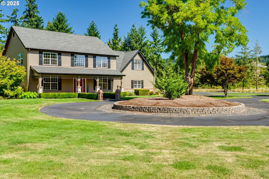 Incredible estate on 2 acres with a large shop near the scenic McKenzie River. Located in a special tucked away hidden gem of a neighborhood in East Springfield. This stunning home features a spacious primary suite with a walk-in closet and spa like bathroom, a versatile den on the main floor, elegant formal living and dining rooms, a gourmet island kitchen with a bright eating area, and a cozy great room with a fireplace. A large main level bonus room next to the great room has so many possibilities and there is also a family room upstairs. Outside, enjoy abundant blueberry plants and a custom built covered patio for an incredible outdoor living space. This covered patio couldn't be more perfect for large gatherings of family and friends and has the possibility to add an outdoor kitchen or TV viewing area. The 20x40 drive-through shop is ideal for storage of RV's, several boats, wood wo...