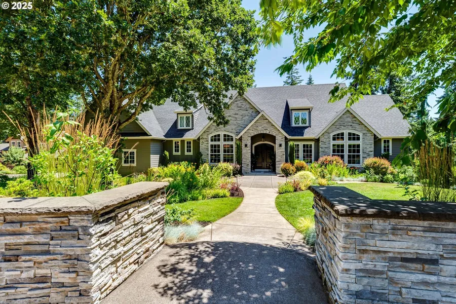 Experience luxury living in this custom-built 2015 estate nestled in the prestigious SW Hills of Eugene. This home is the perfect blend of traditional and contemporary style. Set on over an acre of land in a secure gated community, this private estate offers serene treed views, high-end finishes, and exceptional craftsmanship throughout. Soaring ceilings and abundant natural light define the spacious interior. The main level features a luxurious primary suite with spa-like amenities and a versatile office or den. The heart of the home is a stunning gourmet kitchen with a massive quartzite island, Viking cooktop, French door oven and a huge pantry. The layout is perfect for entertaining and flows seamlessly into the light-filled great room. Enjoy indoor-outdoor living from the expansive deck with tranquil views of Spencer's Butte, ideal for hosting or unwinding in peace. A finished flex space over the garage provides a perfect space for an office/studio, guest room or extra storage. The thoughtful custom design is a rare combination of elegance and comfort, this home is a true gem in one of Eugene’s highly desirable gated communities.