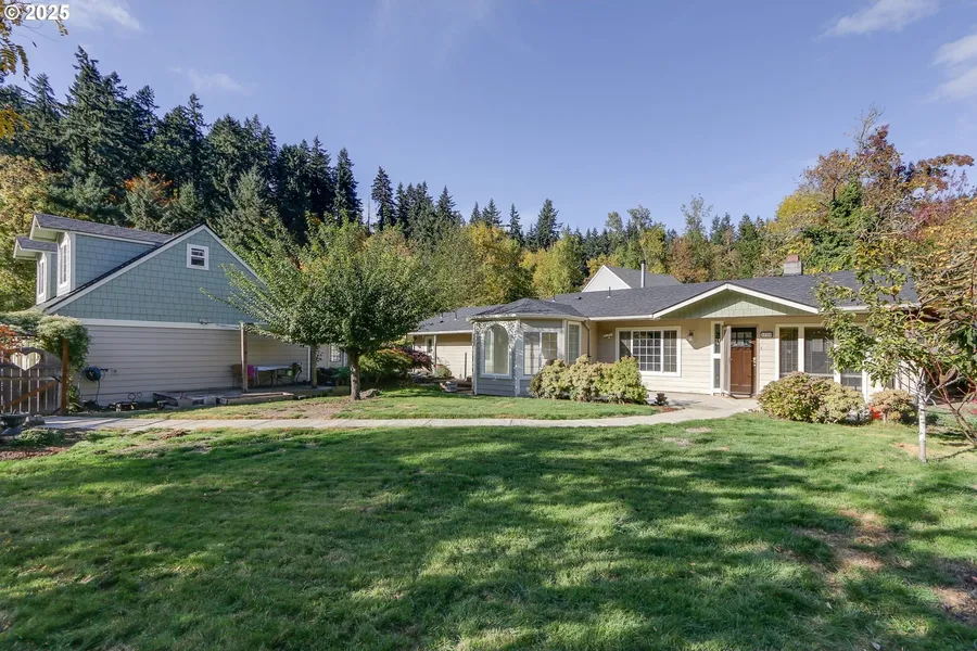 Welcome to "Stay Awhile" a traditional ranch style home offering practical updates and flexible living options. The main home features a comfortable layout with a fireplace, new carpet, and fresh interior and exterior paint. Major improvements include a new roof and fiber cement lap siding completed in 2022, and a new heat pump installed in 2023. The detached garage includes two separate studio units, one currently rented and the other ready for a new occupant or use as a guest suite, home office, or short- or long term rental. The yard is fully fenced and landscaped with established plantings and a koi pond stocked with large, colorful koi. Situated on a low-traffic, dead-end section of E 43rd Avenue, the property offers a private setting with easy access to the Amazon Trail, bus lines, and local schools. A solid home with recent improvements, income potential, and an inviting outdoor environment all in a convenient South Eugene location.