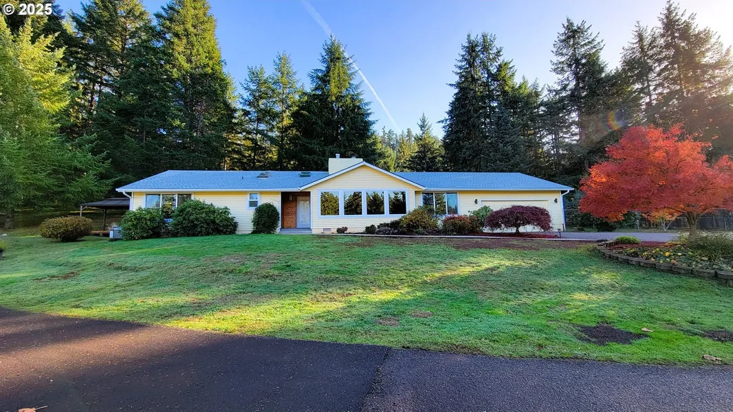 A gardener's paradise on 4.93 Acres! This stunning, fully updated 3 bedroom home features huge windows and skylights throughout, letting in tons of natural light. The kitchen features gorgeous CUSTOM cabinets, all stainless steel appliances, a pantry, a convection oven, beautiful quartz counters and a built-in coffee maker. The primary suite offers a large walk-in closet, and an on-suite bath complete with a walk-in shower and double sinks with lighted vanities. All NEW roof, NEW patio, NEW porcelain tile floors, NEW vinyl windows, and fresh paint both inside and out! Bring your green thumb and enjoy the massive fenced garden, assorted fruit trees, vineyard, rose garden and 3,600 sqft lavender field! Relax and take in the view from your own private hot tub, or brand new pergola! Multiple outbuildings including a oversized 2nd garage, a 19x10 shop with 30 Amp RV electric service, and a HUGE barn with a heated tack room, multiple stalls, updated lighting and loft hay storage. This one-of-a kind property has it all! Don't miss this one!