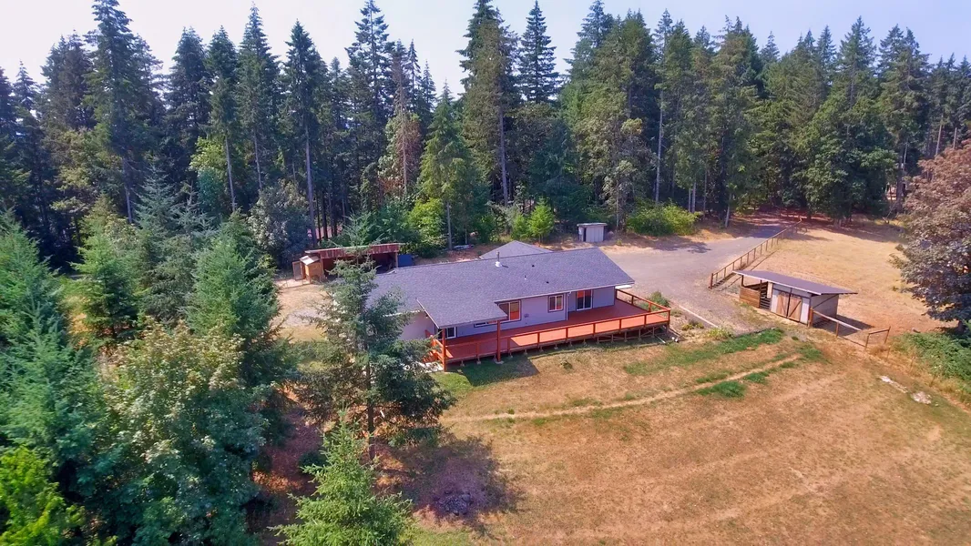 Attention big view lovers, hikers, homesteaders, and just want to get out of towners! This sensibly sized pristine home sits on 13 serene acres, mostly forested, and ready for your homestead to thrive. Inside, you'll find an open floor plan with vaulted ceilings and an abundance of windows that highlight the natural beauty of the surrounding mountain and valley views. The spacious primary bedroom features an ensuite bathroom with a large soaking tub, plus a walk-in shower and double sinks. At the opposite end of the home, you'll find two additional bedrooms and a guest bath creating a nice separation of living space. The modern kitchen and oversized island gives the heart of the home a real "wow-factor". A large corner pantry and beautiful bright Quartz countertops make this space striking and practical. Enjoy private views from every window and immerse yourself in nature when you step onto the impressive covered back deck. Views of the maturing timber and beyond provide a tranquil retreat at your doorstep. The timberland features several maintained hiking trails and a natural freshwater spring. Harness the homestead potential and bring goats, chickens, or other livestock and tend to the multiple garden areas, or, settle down with easy living and let the natural landscape take care of itself. Just 10 miles from the nearest grocery store and less than 20 miles from Eugene, this location provides a breath of fresh air without yielding the amenities of town.