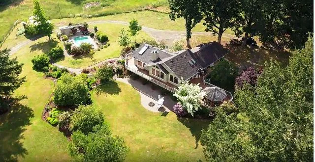 Located in the center of a pristine forest, this ranch is totally hidden from view. The Northwest Contemporary home overlooks the creek-fed lake and the lush green pastures that have been home to cattle and horses. Complete serenity and utmost privacy, yet mere minutes to Eugene, Oregon.
