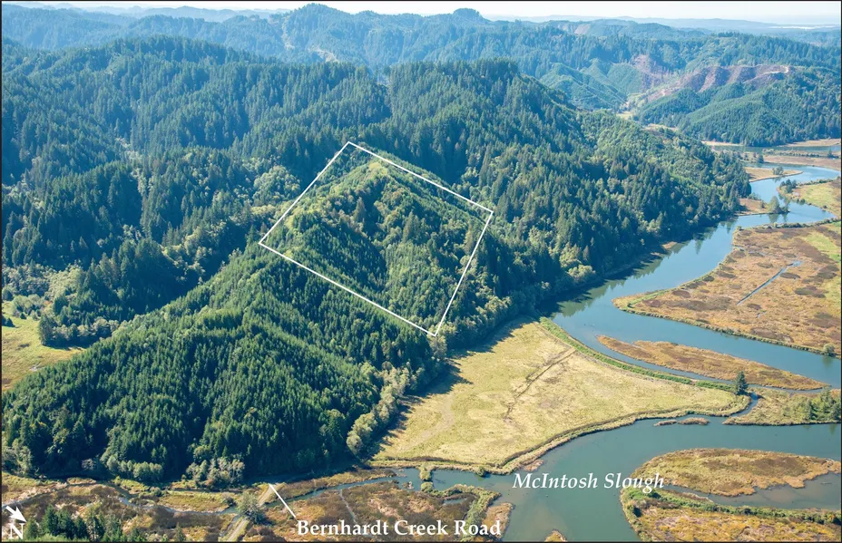 This 40 acre timber tract is located along Duncan Inlet in the Siuslaw River Valley, five miles southeast of the coastal resort city of Florence, and five miles west of Mapleton. Bernhardt Creek Road is at the northwest corner of the property. There is access to the northeast corner through private forest land. Siuslaw National Forest is along the southern and eastern boundaries. The tract is well-stocked with primarily 21 year-old Douglas-fir. Topography is moderate to steep west- and east-facing slopes. Douglas-fir site index is 125.