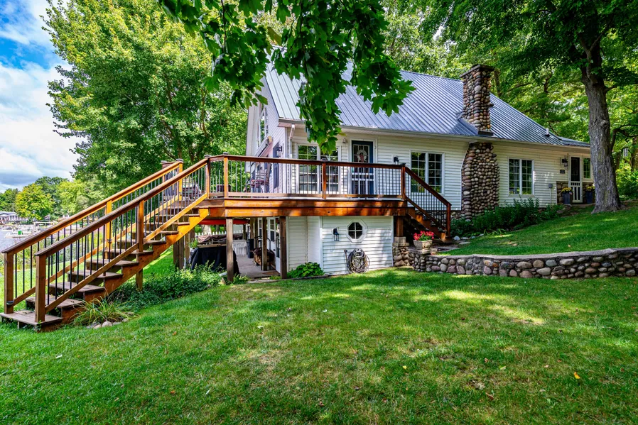 This stunning lakefront home on all sports North Lake offers nearly 100 feet of west-facing shoreline, ideal for enjoying breathtaking sunsets, water sports and its gorgeous every one of Michigan seasons. North Lake is 53.5 acres, 46 ft deep at the center of the South end and 25 ft at the center of the North end. The property boasts a solid seawall and a flat-bottomed sandy area, fortified with a muck matt, making it perfect for all water activities - and a delight for those who do not like "squish" between their toes! (lol). The expansive deck off the living room provides superb lake views, perfect for relaxing or entertaining. Inside, the home is wonderful and has captured the love of this family. Not only is this home charming but it features a finished walk out basement with original Michigan-mined cobblestone foundation, and an open airy loft sleeping area for two with cathedral ceilings and excellent storage. Every detail of this home has been revitalized or enhanced, including a durable metal roof, a spacious kitchen with a breakfast bar and all stainless appliances, We also have for you a modern first-floor laundry room, and a large full first floor bathroom with a luxurious walk-in shower. A large graded out lot across the street, to park your RV or boat, complete with a double sized shed, offering additional storage space. Huge bonus adding to your peace of mind is a new whole-house generator. Located just 1.5 hours from Auburn Hills/Rochester, this property is an ideal getaway or a cozy year-round residence.