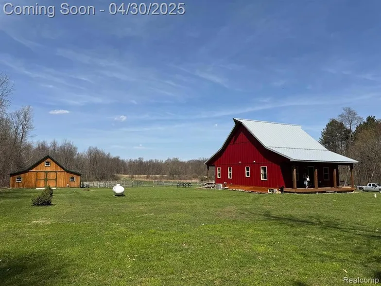 Drive through the woods to this absolutely charming, cottage-style home on 20 picturesque and private acres! Built only 8 years ago by the owner, meticulous care was taken in the construction and placement of this home, creating a maintenance-free structure and using the best materials. Enjoy a seamless steel roof, steel siding, overhangs covering a 30x6 front porch/deck complementing a 30x8 back porch/deck to enjoy the views - both freshly refinished and painted! Warmth envelopes you as you enter this cozy home with charming Gingham curtains, hardwood and ceramic flooring throughout. A vaulted ceiling in the Great room stretches from the kitchen with custom cabinetry and pantry, past the dining to a living room with double door wall to the deck. Did I mention the beautiful copper kitchen sink? AMAZING! Mud room/laundry with stacked full-size washer and dryer next to a full bath adjacent to the second bedroom, and lots of pocket doors to enhance room and hallway spaces. Comfy primary bedroom and the homeowner is renovating the full bath with a whirlpool tub, ceramic tile and new vanity. 5" 180 ft rockwell, A/O Smith recycling hot water on demand, french drains and a generator that backfeeds from the barn to run the home. The wood basement is insulated and ready to finish with a workshop, extra high ceilings and a Bilco door allowing a wider than average staircase to facility finishing or storing items from outside. The property enjoys a cedar and steel Amish-built barn, cement with a furnace installed in the 12' tall rafters, new 15x9 tack room, electric, two 10x10 stalls, one 12x12, two pastures with hotcote and 4-board oak fencing, walkthrough, six dual enter/exit gates, 64x128 competition arena, underground wiring and a 9x36 outdoor overhang for tractors and equipment. Included is a 24x36 steel carport garage and new Black Hill Spruce trees planted - no needle cast disease with these! If you are marksman, enjoy a shooting range and beyond that, woods and hunting!