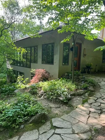 Price DROPPED! A natural beauty road and not merely a home, but a sanctuary nestled in the Heart of Metamora Hunt Country. This masterpiece is a testament to the seamless blend of innovation & artistry. Since the 1950s, this 80-acre family-owned parcel has been a cherished legacy & within it, a 10-acre canvas was chosen to craft a dream. The architecture, a meticulously designed European-style raised ranch, harmonizes effortlessly w/the forest, marsh & unique topography of this extraordinary land. Private drive winds through the woods, past vibrant perennials, flowering trees & cleared flatland perfect for garage/horse pasture, culminating at the residence. Embracing the power of nature, this home features black concrete flooring, 7/8 cement stucco exterior & 3' roof overhang, creating a passive solar system that captures the sun warmth in winter while shielding the interior in summer. Artistic elements abound, including high-end solid wood exterior doors, stained glass windows & European-inspired bathroom doors enhanced w/opaque glass. The centrally located galley kitchen, where form meets function, boasts new SS appliances, granite & butcher block countertops, handmade cabinets in ash & mahogany. The upper level is a symphony of light, w/expansive windows that invite the outside in. It features wood, cement, carpeting & ceramic tile flooring, built-in bookcase & 2 spacious bedrms w/renovated bath. The lower level, adorned w/floor-to-ceiling windows, offers another perspective of nature. It provides a large family room, bedrm & new bathroom, offering ample space for creativity & connection. It includes 2 add'l areas, possibly a 4th bedrm, office/activity room. This minimalist design is the ideal canvas for your imagination. The location benefits from moderate Lapeer Co. taxes in the exceptional Oxford school district & conveniently located 15 minutes from Oxford/Metamora. Secluded nature at its finest, a place where innovation & nature coexist in perfect harmony.