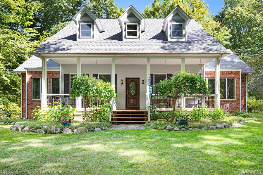 Welcome home to 5511 Blood Rd! Backed by the scenic Metamora Hunt Club, this estate combines timeless country charm with modern comfort. Set on a private, wooded 10-acre lot along a certified Natural Beauty Road that is county maintained, the property offers the perfect balance of space, serenity, and opportunity. The floor plan is thoughtfully designed, featuring a spacious main-level primary suite for convenience and privacy, complemented by three generously sized bedrooms upstairs—ideal for family, guests, or versatile living arrangements. Soaring ceilings and wood cabinetry highlight the quality craftsmanship, while the open layout creates a warm, inviting flow for both everyday living and entertaining. The walk-out lower level is designed with entertaining in mind, offering a full bar and wine cellar, along with direct access to the property’s natural surroundings. Outdoor living is equally appealing, with a welcoming front porch and expansive back deck overlooking your wooded sanctuary. Recent updates, including a new roof in 2024, ensure peace of mind. While the home has been lovingly cared for and is move-in ready, it also offers the opportunity for thoughtful updates to reflect your personal style and unlock additional value. With its combination of size, setting, and quality, this property represents a rare chance to own a well-built estate in one of the area’s most desirable locations.