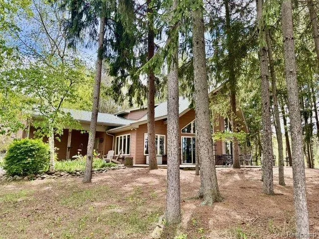 Paradise! This is an astounding opportunity for the sportsman looking for idyllic fishing & hunting, trophy muskie, walleye, pike, perch, crappie, warmouth bass and sunfish! An abundance of hawks, owls, sandhill cranes, blue heron, kingfishers, tundra swan, pheasant, turkey, quail... plus deer, fox, beaver & mink! Tranquility envelopes this home as you enter the gated property with a winding drive back to a peaceful setting, nestled in the trees with panoramic views. The family homestead was settled in the 1950s & this is the last 12+ acre parcel owned by the original settlors set on a peninsula shoreline on private, all sports 40 acre Lake Luena, previously known as Mud Lake. Amazing deciduous trees include spruce, oak, sugar maples & pines, w/red buds & ornamental trees surrounding the home. Used as a year 'round home by the owners, this is also a perfect getaway for the busy family looking for the "up north escape" atmosphere yet within an hour to Birmingham or Rochester. The home offers an open concept living space w/stunning 19' vaulted ceiling accented by two nine foot door walls to the lakefront deck w/soaring fieldstone gas fireplace & raised hearth. The Great room, kitchen, dining & hallways are all hickory floors, with a kitchen enjoying hickory cabinets, breakfront built in buffet & kitchen island. A multitude of windows with duet shades offer lakefront viewing. Two main floor bedrooms, two full baths, an oversized 30x27 2-car garage and in 2022 a new roof & Bosch dishwasher; in 2024 new water softener new washer & dryer. First floor laundry closet; a utility closet accesses a 4 ft crawl space with furnace, sump and utilities conscientiously maintained and treated with mold control and plastic. A four foot open staircase accesses a loft bedroom or study w/beautiful views of the lake. To store your toys, boats & any extras use a steel 70x30 garage with two oversized doors, an insulated workshop, cement floor w/drains & 220 electric for plugging in an RV!