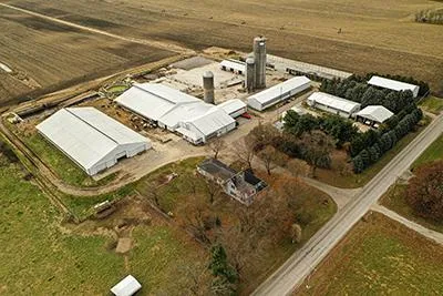 Building Description Tract 1: Well maintained dairy facilities with 2006 double ten parlor, 168 stall free stall barn, heifer barn with 96 free stalls, calf barn, bunker silo, poured concrete 24 x 96 silo, 2 stave silos, storage buildings, 348 total free stall capacity Includes: 2,841 sq. ft. 1.5 story 1895 remodeled farmhouse with 4 bed + 2 bath and attached garage.