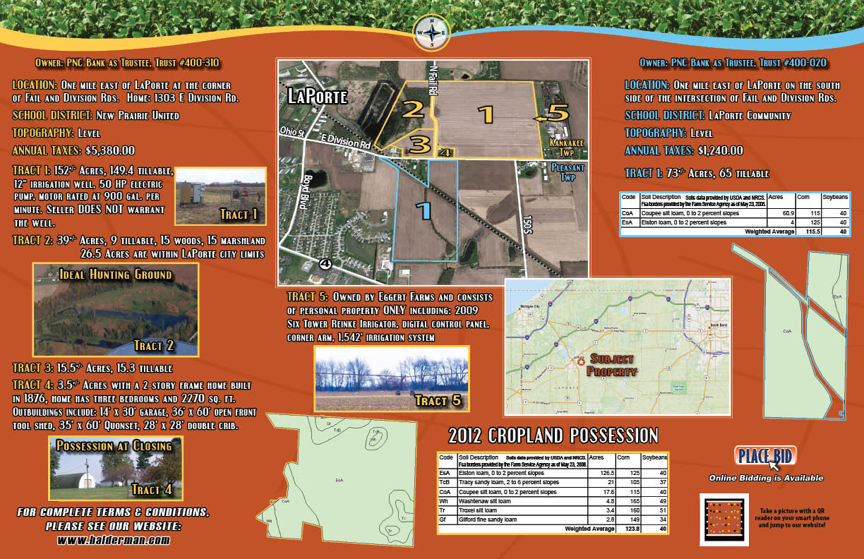 Tract 2: 39 Acres, 9 Tillable, 15 Woods, 15 Marshland. 26 Acres are within LaPorte city limits.