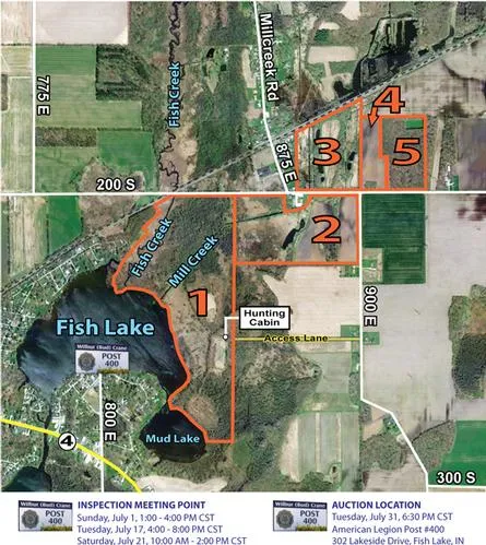 AUCTION Tuesday, July 31 at 6:30 PM CST to be held at the American Legion Post #400, 302 Lakeside Drive, Fish Lake, Indiana.