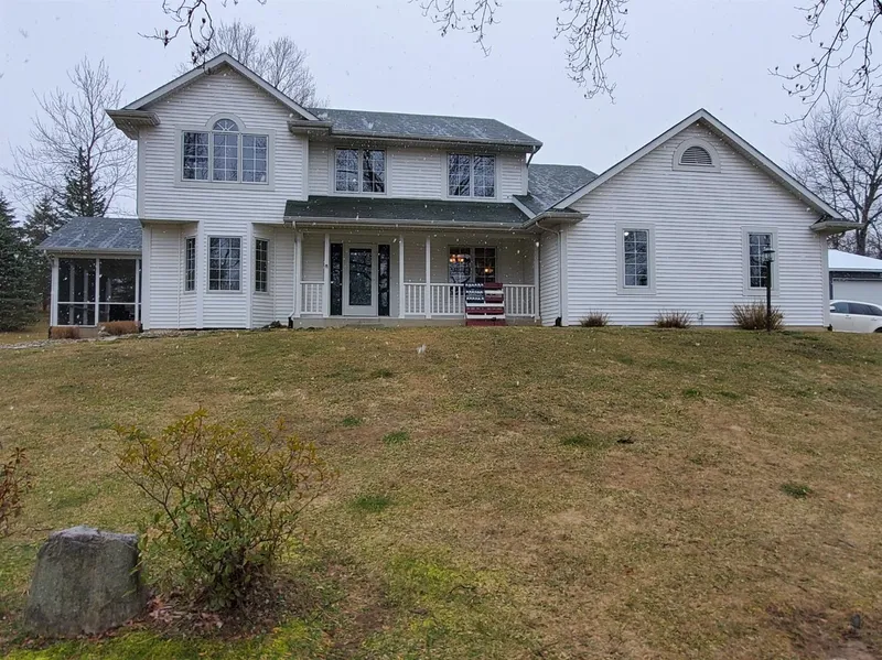 This lovely 4 bedroom,2 story home sits on 10.5 acres in beautiful Galena township! Wonderful floor plan with open concept living/family room with fireplace and enclosed 3 season porch where you can relax! The mudroom off X-lg two car garage has a pantry spilling into eat in kitchen with lots of counter space and cabinets. Formal dining when you want to get fancy. Kick back on the multi level decks for outside dining, and cooling off in the 30 ft round above ground pool built into the deck. Lots of privacy with approximately 7 acres of wooded property behind the home. There is an additional 45x40 pole barn to store whatever you need to. In addition, the basement is partially finished including a half bath on this level, and on the main . The master ensuite is fantastic and tastefully decorated with huge master bath, separate whirlpool tub and shower and walk in closet. Three more ample s...