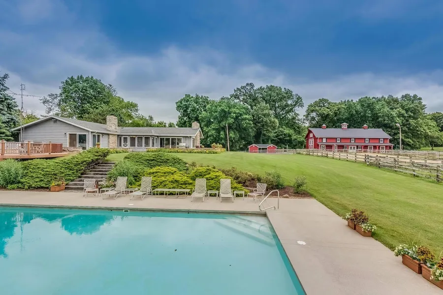 Beautiful Country Home Estate just outside of Michigan City Indiana. This 48 plus acre equestrian estate offers its new owners a luxuriously appointed 4 bedroom residence with 4 fireplaces, spacious great room with vaulted ceilings, walls of windows that showcase the vistas, pastures, trails and fenced paddocks. The spacious master suite offers large walk-in closet, spa style bath and fireplace. The finished lower level offers large rec and multi-use area w/fireplace. The 2 screen rooms off great room are steps away from the custom heated in ground pool, cabana house with dressing rooms and bath. The star of the property is the elegantly designed custom barn that offers luxury stalls, state of the art amenities, radiant heat, managers office and large tack room. Surrounding the property are several miles of trails for horseback riding, walking, ATVs, cross country & snowmobiling. This is...