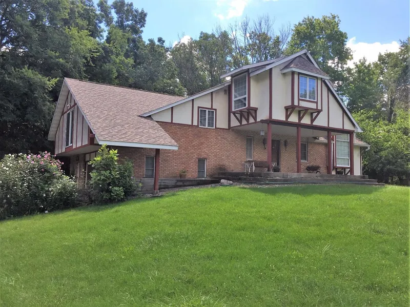 Designer/architect built(English Tudor), multi-level home with 26.78 acres. 24.86 acres in Forest Reserve, with pond. 3 bedrooms and 21/2 bath with plumbing for a 3/4 bath in basement. 21/2 car garage and a 900 sq. ft. carriage house. The home features a country kitchen, 3 season sun room,library, and main floor laundry.Bathrooms feature additional heating systems. Master bath has potential for a sauna. Underground electric service. Great for trails or paths.