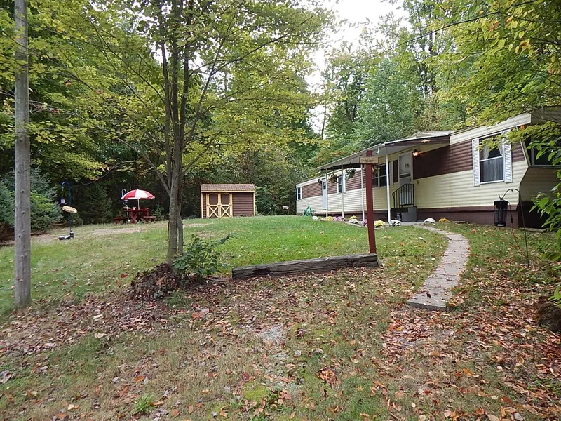 Private, wooded setting with two bedroom well maintained mobile home that is cozy and clean. Plenty of storage, parquet floors, built-in cabinetry and great light. Five acres, great home site, nature sanctuary, or mini-farm.