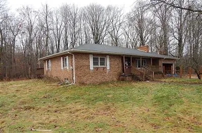 all brick ranch home with dining area off kitchen and patio doors into back yard. Two acres is partially fenced and mostly cleared yard. Large living room with fireplace, full basement and attached garage. House is accessed from easement off 800 North and cannot be seen from the road.