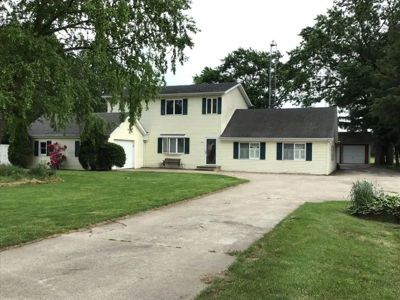 Presenting...A Home on 2 ACRES, pole barn and inground pool. 3 bedrooms, 2 bath, main floor laundry. Main floor Master bedroom has a SPACIOUS walk in closet and its own bathroom. Formal dining room, large living room, and a NICE 3 season sunroom off the living room overlooking the back yard. Merilat kitchen cabinets with pull out drawers. All Appliances included. Upstairs are 2 very large bedrooms and an attic access area that could be used as well. Newer Furnace, AC & water heater and Rev Osmosis system. A portion of house has baseboard heat when addition was added. Very clean Basement and a 1 car attached garage on the Home. This has Fruit trees and is an open pretty setting. New Prairie Schools.