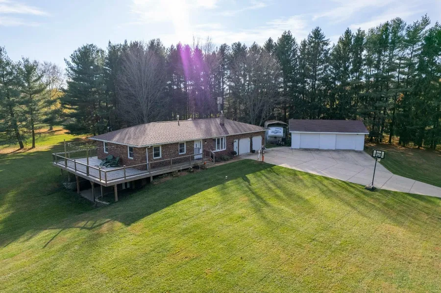 Welcome to this remodeled sprawling ranch situated on just under 3 wooded acres on the most sought after 1000 North corridor. Home offers updated kitchen w/ premium stainless appliances, new custom cabinets and designer granite counter tops, spacious dinette area with large glass doors that highlights the stunning mature landscape and expansive wraparound deck. Three spacious bedrooms, updated bath, large living room and main floor laundry complete the main level. The lower level offers spacious great room/ media area, updated bath and two bonus rooms both with French doors leading to covered outdoor space, as well as a built-in wet bar/beverage area, and plenty of storage closets. 2.5 car detached garage has it's own separate furnace, A/C and running water. LET ME WELCOME YOU HOME!!!! THIS ONE WONT LAST LONG!!!